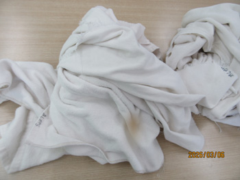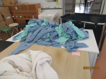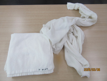 | 左側のものを折りこのように使います | この施設の洗濯場よりくる洗濯済みのものです | これはバスタオルですが洗濯物一般がくるようです |